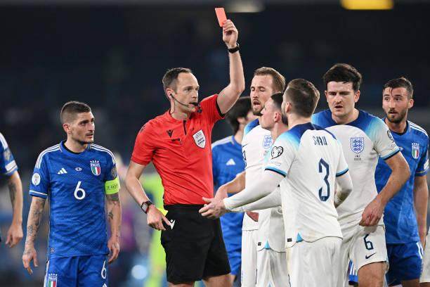 欧洲杯预选赛C组第1轮,意大利主场1比2不敌英格兰,第13分钟赖斯为客队首开纪录,第44分钟凯恩点射扩大领先,第56分钟意大利新归化的射手雷特吉扳回一球,卢克·肖第80分钟两黄一红被罚下。意大利1999年来首次在欧预赛主场输球;索斯盖特成为1961年温特博特姆以来,首位带领英格兰队客场击败意大利的主帅。